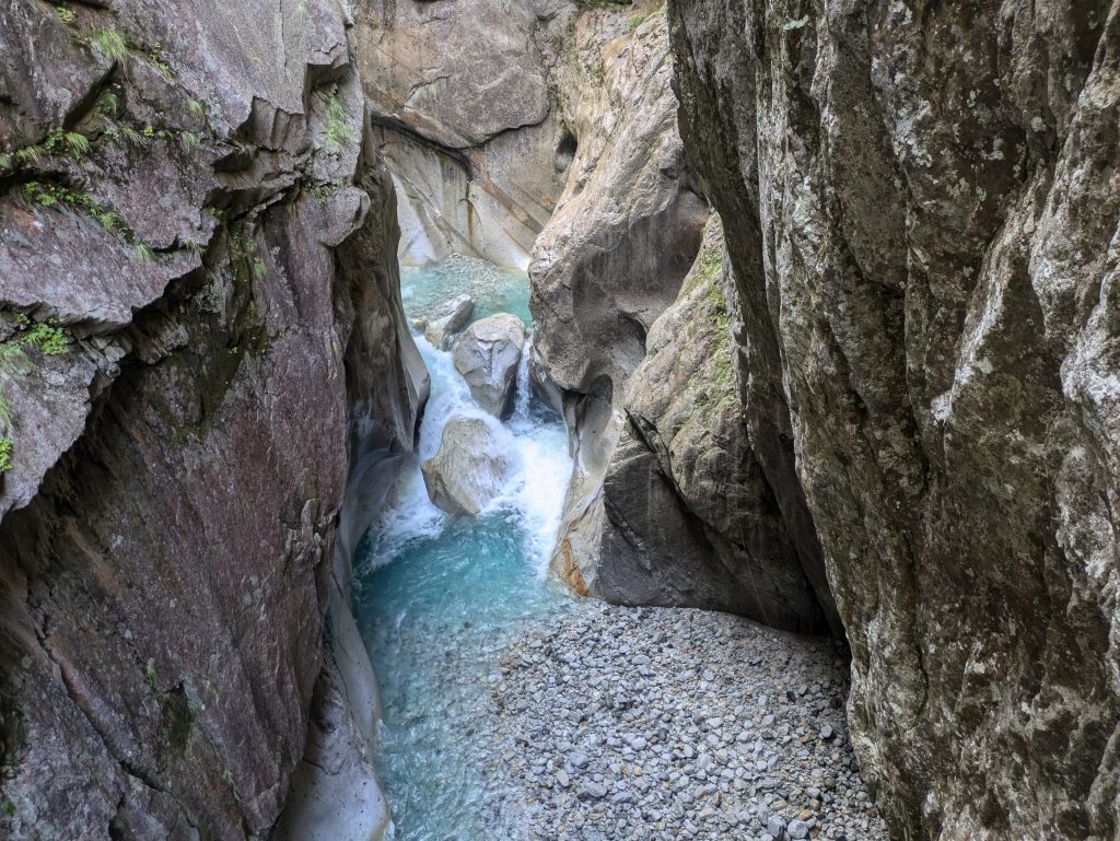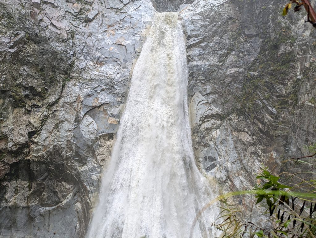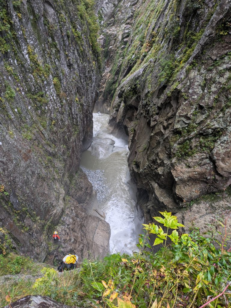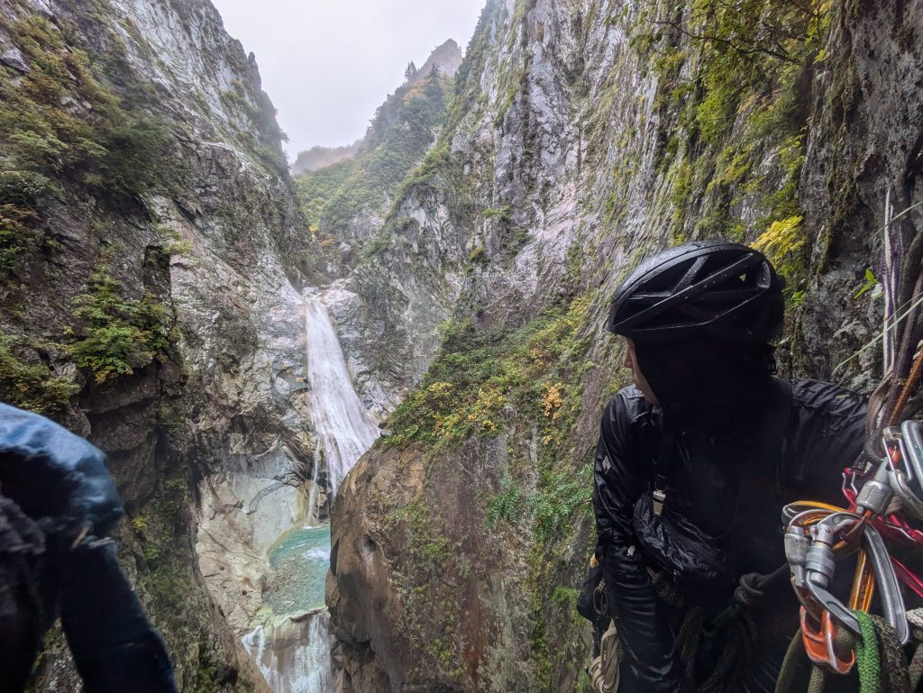 核心の3日目には雨が降り、蒼いゴルジュは濁流と化した。恐怖もあったが増水したD滝を見られたことはこの遡行の良いスパイスになった。