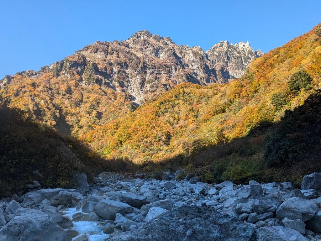 水の蒼さ、岩の白さ、最後の夜の焚火、燃えるような紅葉はいつまでも忘れないだろう。ただ、遡行を終えて感じたうれしいような虚しいような気持ちを、私はまだうまく消化できていない。