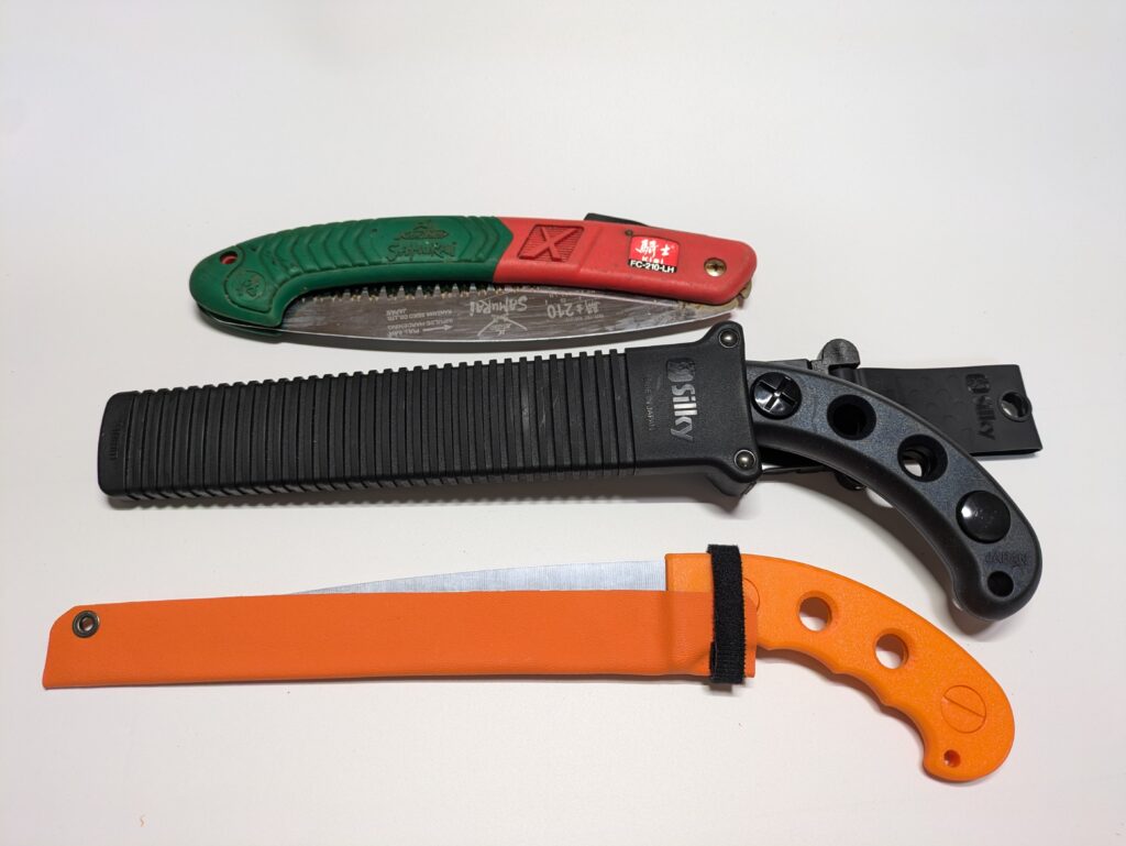 ⇒ 夏は焚き火用に210mm、冬は300mmの替刃でスノーソーとして使用。