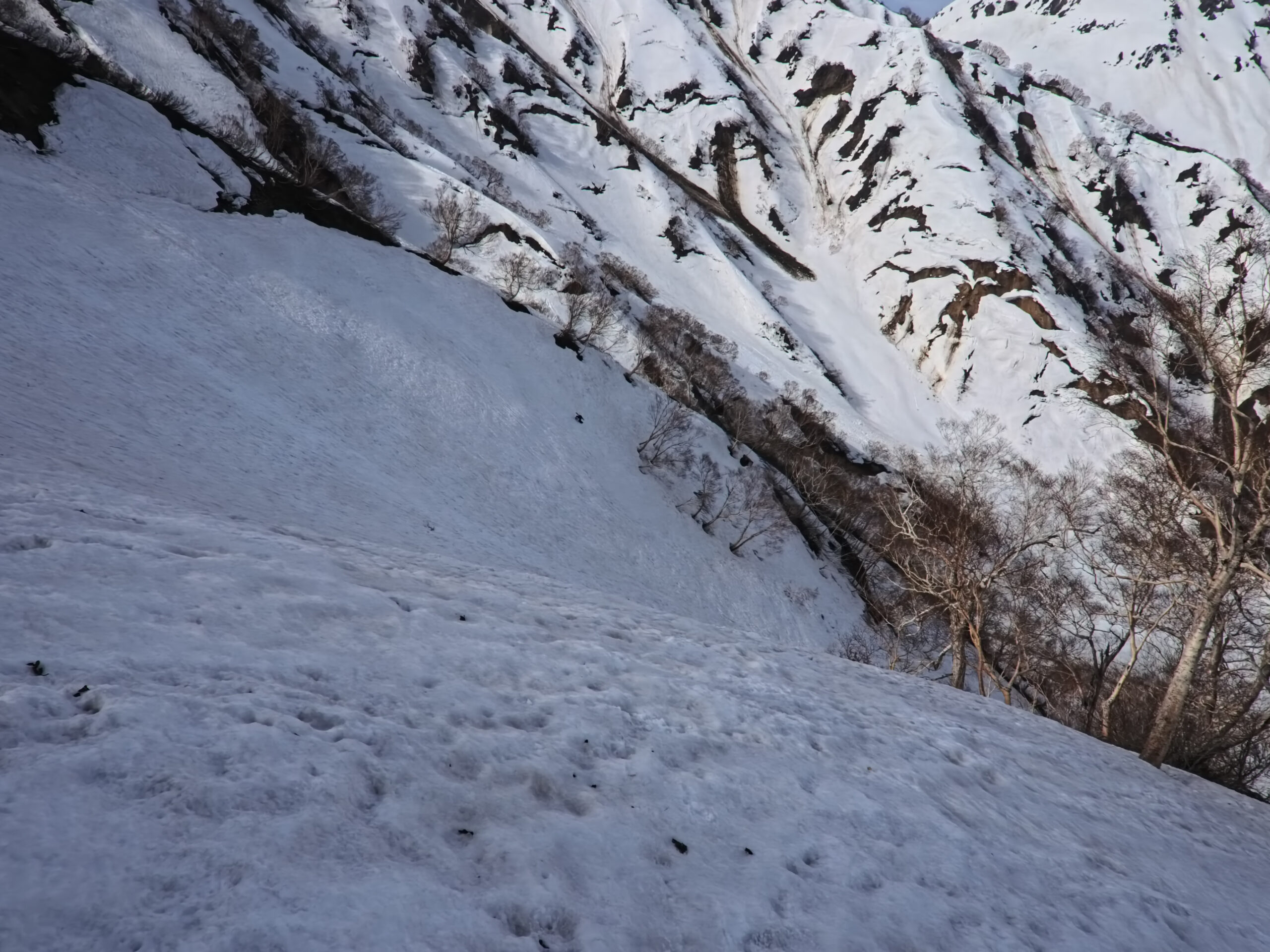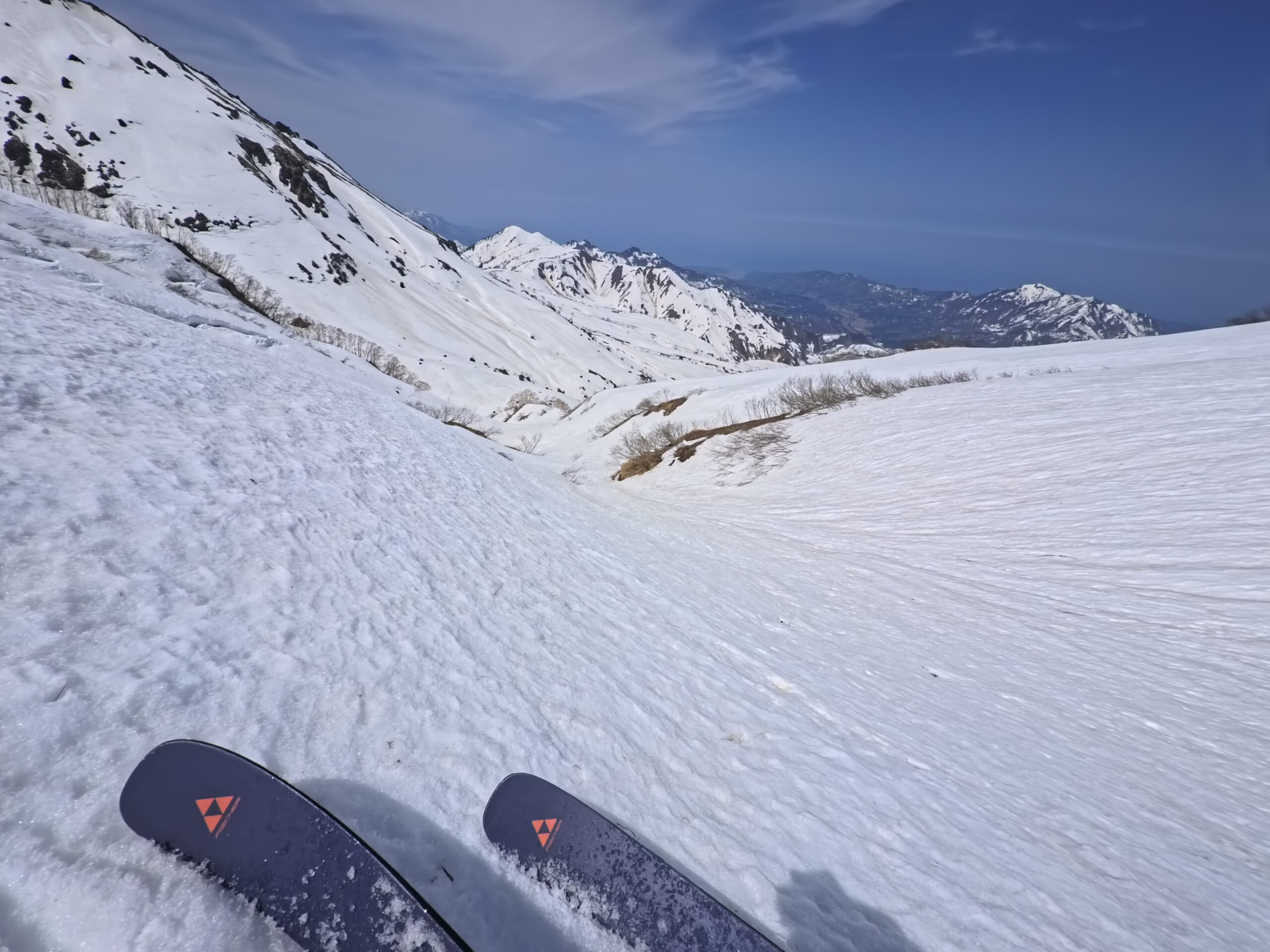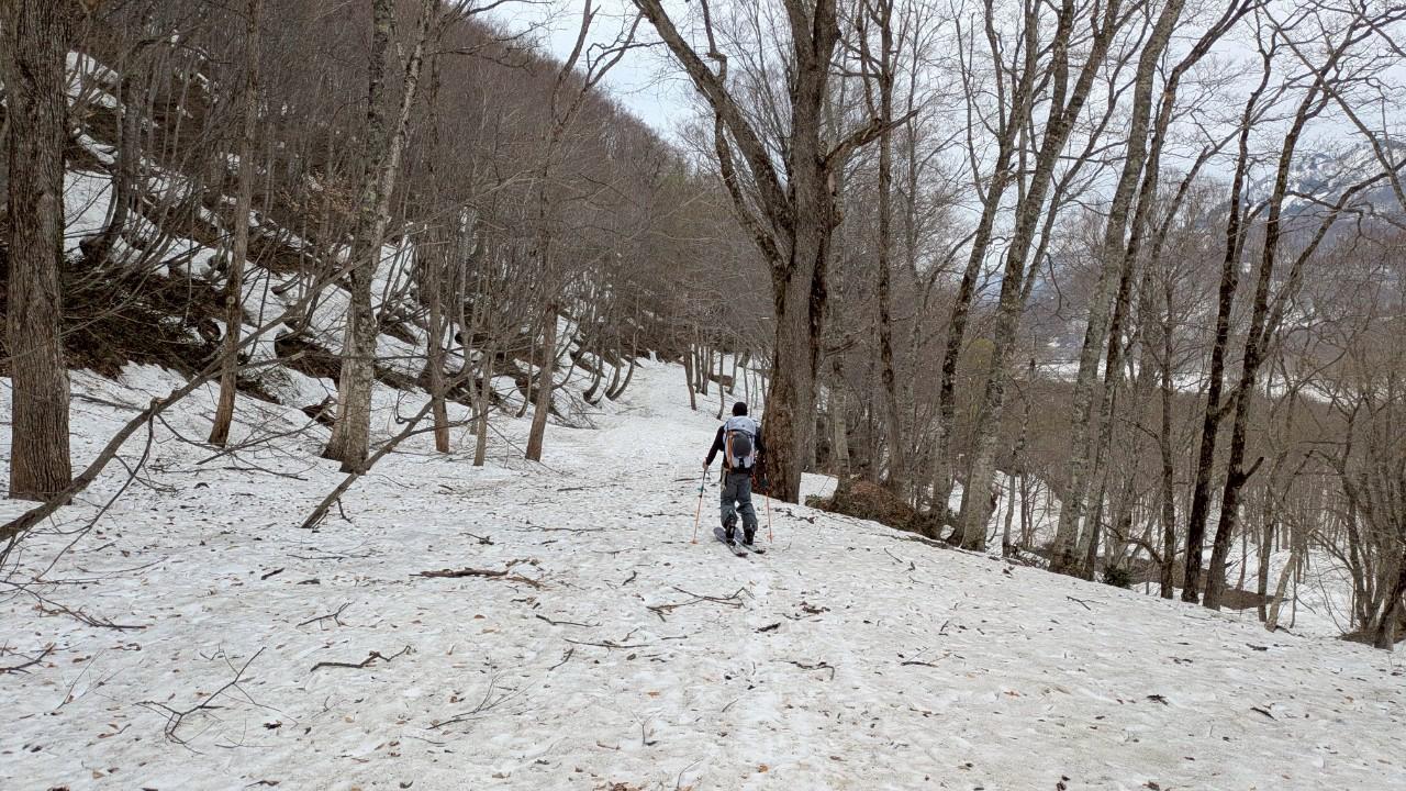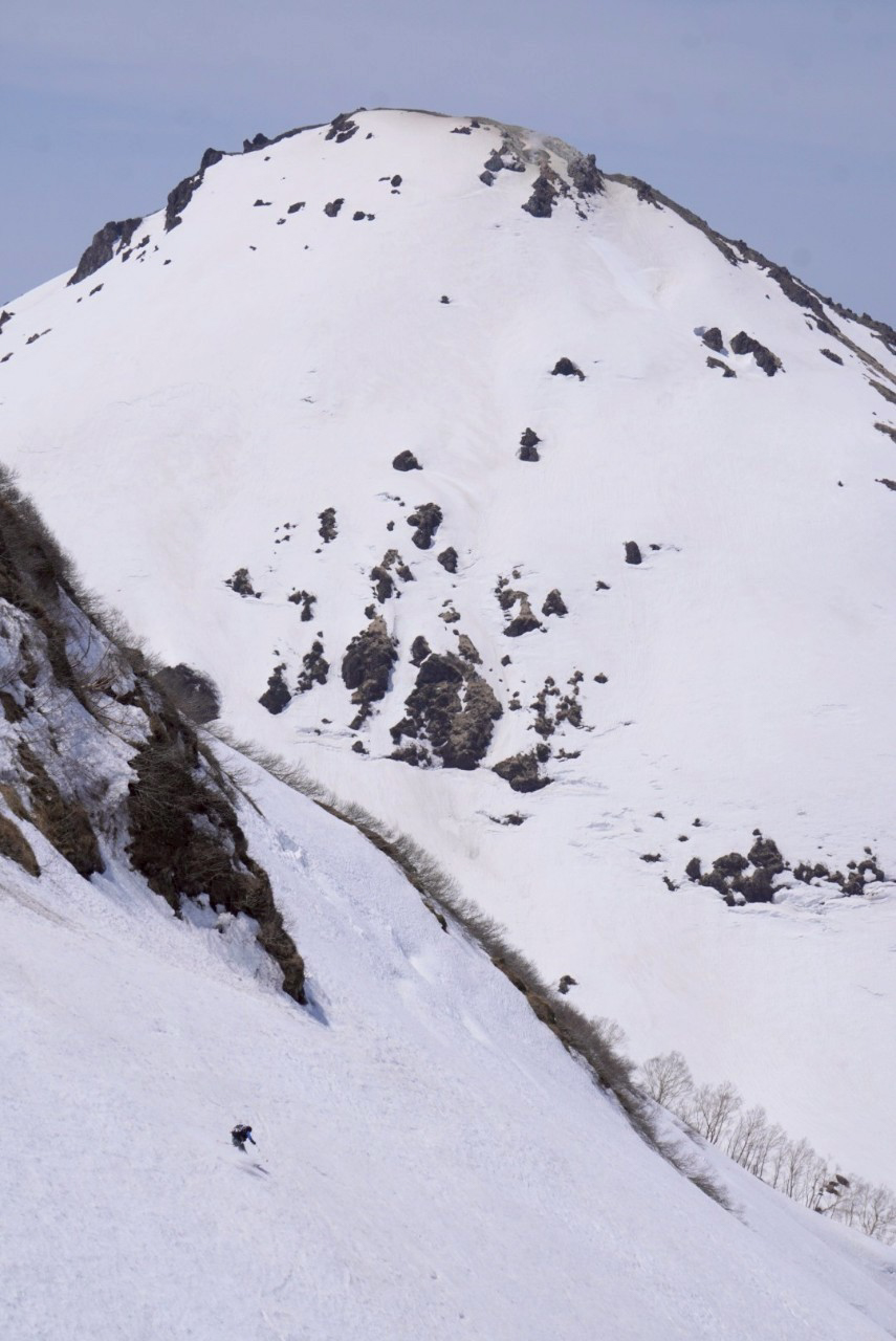 影火打の北西面ルンゼはきれいなボウル状で、雪が良ければもっと楽しめたであろう。ボウル地形に誘い込まれ、無駄なリスクを取ってしまったので反省。