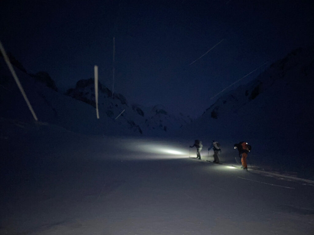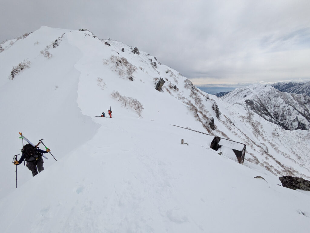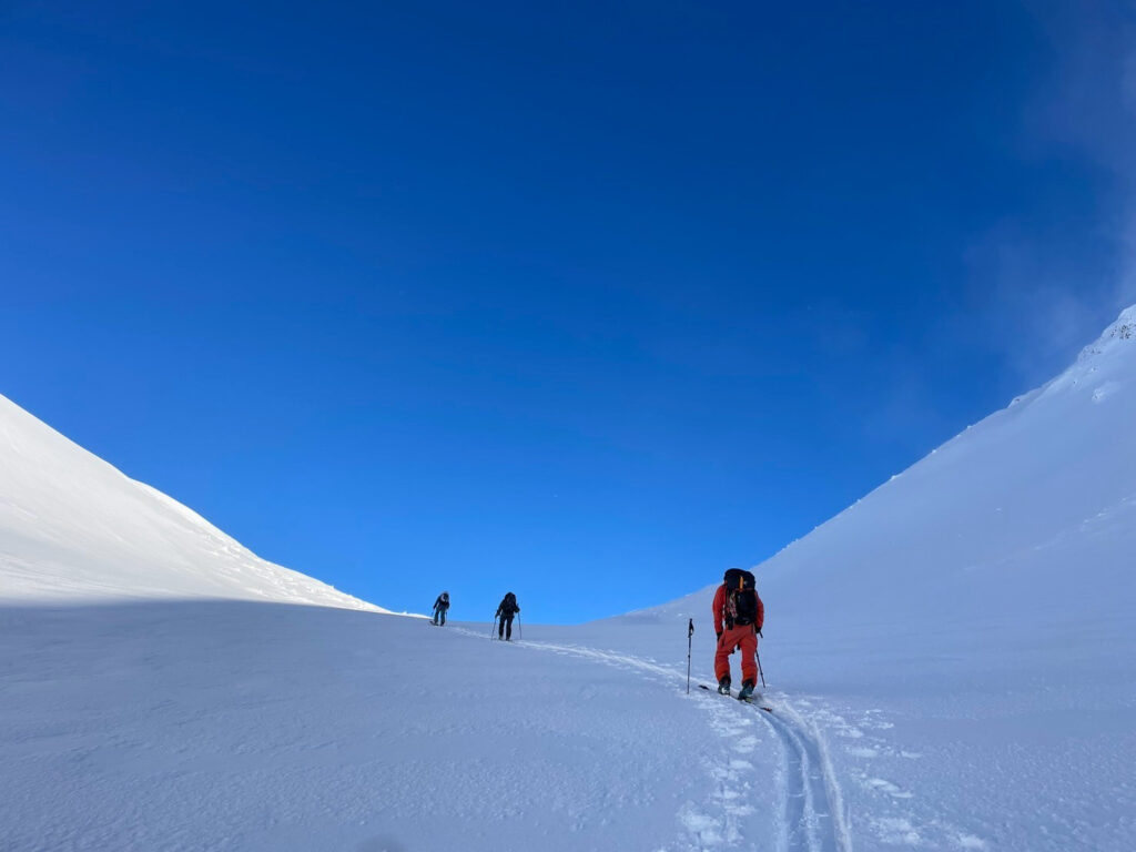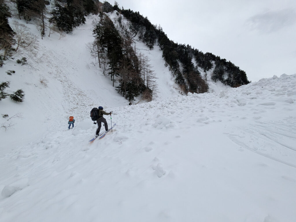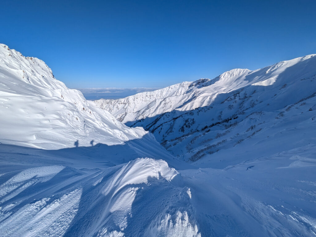 前日までにそこそこ降雪があり、旧雪との結合がやや不安だったが、メンバーと相談し、総合的に判断して決行を決めた。自分だけでは、エスケープルートや積雪コンディションの判断にだいぶ悩んだと思うが、経験豊富なメンバーから勉強させていただいた。