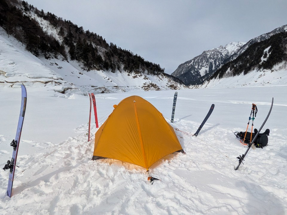 吸水力が異次元で、絞ったらほぼドライになるので色々重宝する。私は基本的に、沢でもBCでもセームタオルを持っていくことにしている。今回のお湯ブチこぼしの際も、とても役に立った。シールを貼る前に滑走面の水気を取ったり、ツエルト内部の結露を拭ったり、地味に便利。